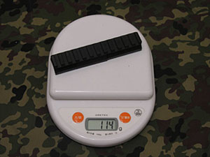 フロンティアオリジナルの89式用マウントベース。アルミ製でとても軽い。![]() 重量は86gでマルイ純正の亜鉛ダイキャスト製マウントベースより28gも軽い。 |