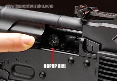 ボルトハンドルを引くとホップアップ調節ダイアルが現れる。