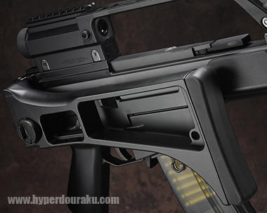 折りたたみ可能なフォールディングストック。G36Cのものよりも2cmほどG36Kのほうが長くなっている。