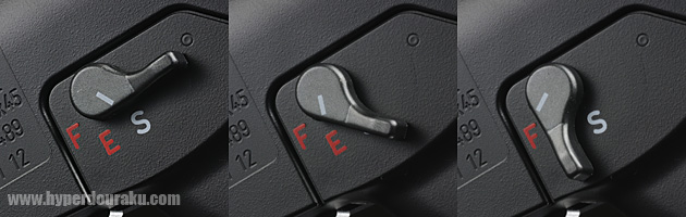 セレクターのマークはG36Cの弾薬イラストからF、E、Sとドイツ表記となった。Fがフルオート、Eがセミオートで、Sがセフティポジションとなる。アンビセフティでレシーバーの左右両側から操作可能。操作感はややネッチリとした感じではあるものの、それぞれのポジションでカチッとスムーズにしっかりと切り替わる。