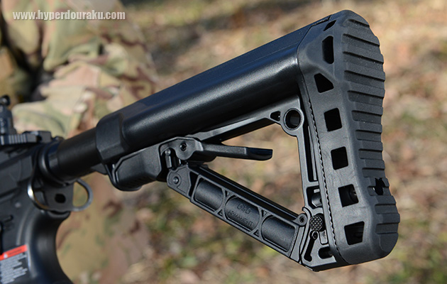 ストックはG&GオリジナルのGOS-V3ストック。6ポジション。バットプレートはゴム製で構えた時の感触も良い。