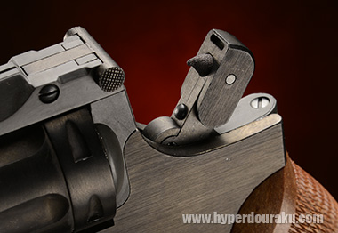ハンマーノーズのくにゅっと曲がった形状も実銃を再現している。ハンマー根本内側の突起はノッカーで、実銃には無いもの。