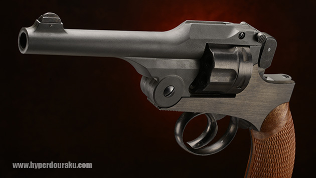 弾薬は9mm×22R(二十六年式拳銃実包)を使用するダブルアクションオンリーのリボルバーだ。トップブレイク(中折れ式)でオープンしたシリンダーに6発を装填する。明治に制式化されながらもリボルバーならではの安定した作動から、日露戦争、第一次世界大戦、日中戦争、太平洋戦争にかけて約6万丁が生産され、半世紀に渡って使用され続けた。