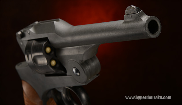 実銃の二十六年式拳銃は日本初の国産リボルバーとして明治26年(1893年)に帝国陸軍に制式化された。