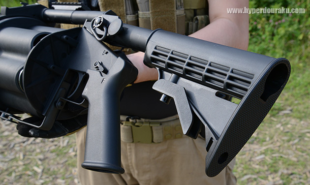 ストックはM4カービンタイプの6ポジション、リトラクタブルストックが装備。