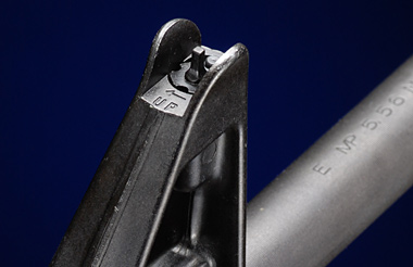 射撃距離に応じてリアサイトのピープを二種類で変更できるL型タイプ。