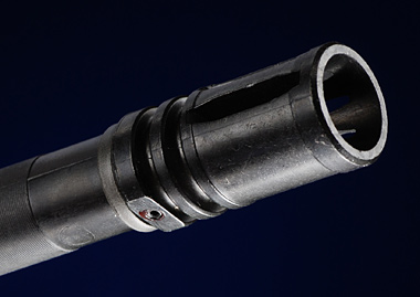フラッシュハイダーはバードケージタイプだが、射撃時に土煙を上げにくいように下面には穴が開いていないハーフタイプ。