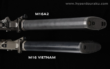 M16A1の三角断面左右分割式ハンドガードから、M16A2では丸断面の上下分割式ハンドガードに変更された。