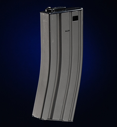 M16系のスタンダード電動ガン用マガジンは共有できるので、純正オプションでゼンマイ給弾式の300連多弾数マガジン、190連多弾数ショートマガジン、スプリング給弾式の80連ショートマガジンが使用できる。
