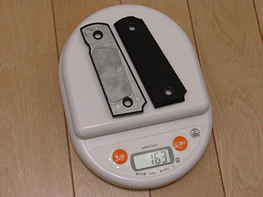 ノーマルのグリップはプラの殻に亜鉛ダイキャストのオモリが入っていて、重量増加に貢献している。163gとかなりの物。