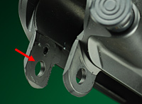 また、アッパーレシーバー後部のテイクダウンピン用の穴部分も金属がインサートされ、耐久性が向上している。