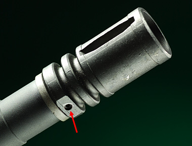 下面にあるイモネジを緩めればフラッシュハイダーが取り外せる。