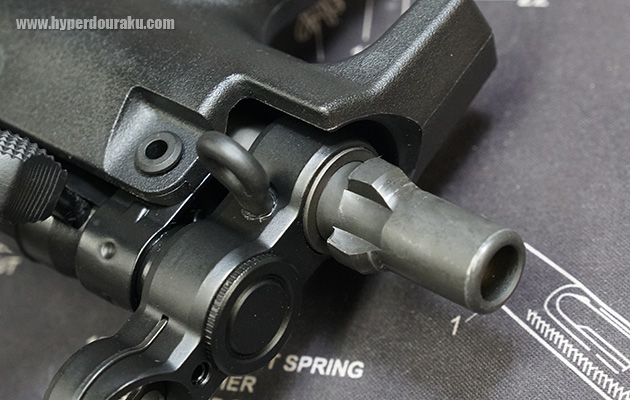 インドアでトレーサーを装着する想定で、マズルはM14逆ネジ仕様のものを組み込み。