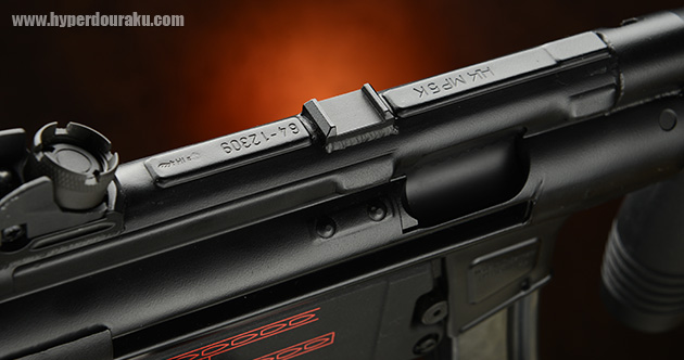 レシーバーのマウント部。HK MP5Kの刻印あり。