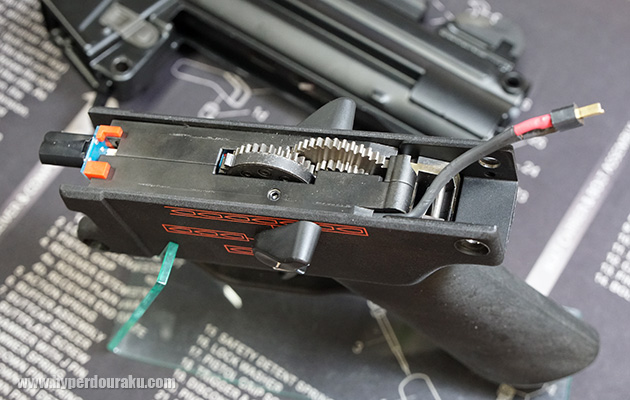 ギアボックスの収まるグリップフレーム部はTW5純正を使用する。トレポンのTW5のギアボックスはM4シリーズとは異なり遊星ギアを使用しない。一般的なへベル、スパー、セクターの3ギア構成だ。もちろん電子制御トリガーなのでトリガーレスポンスの良さはM4シリーズ同様。