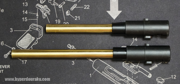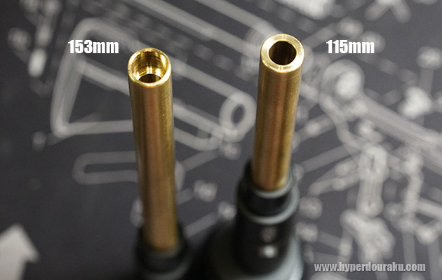 インナーバレルは通常115mmが装着されるが、今回はより安定した命中精度を求めて、153mmのインナーバレルを組み込んでもらった。