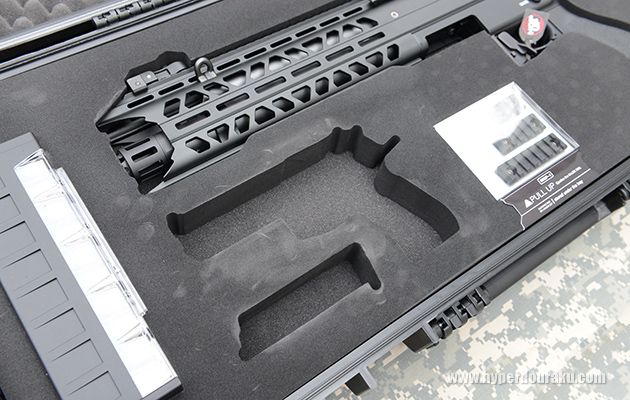 なお、2018年2月に発売された限定モデル、電動フルオートショットガンのトールハンマーの専用ケースには、本モデル収めるためのカットが入っている。