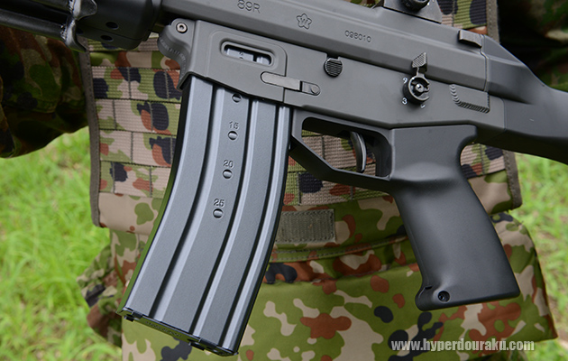 それと、もともとの89式の設計だが、マガジンハウジング部がタイトなので、マグチェンジが慣れないと難しい。