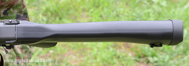 ストック左面にのみスリングスイベルがある。