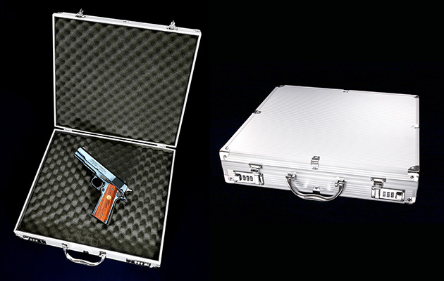 そして銃本体はアルミ製のガンケースに収められております。こちらはガバメントサイズであれば、3丁まで収納可能なコレクションボックスとしてもご利用可能です。