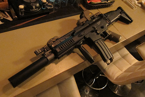 店長のメインウエポン、SCARをみせてもらう。エイジング処理されていて渋い。