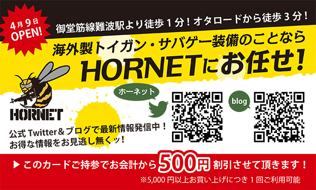 4/9大阪千日前に『ミリタリーショップ HORNET』オープン!!