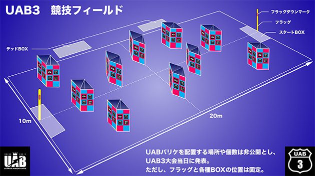 大会当日に発表される競技用フィールドでのバリケ(UABトライアングル)の配置を、プレイヤーは朝8時から9時半までの間に確認し、戦略などを立てます。