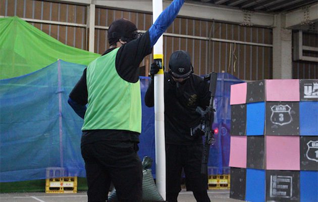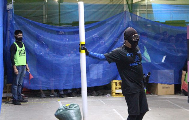 上記写真のように、審判がプレイヤーの被弾判定をサポートするほか、違反行為に対しても厳しいジャッジを下します。