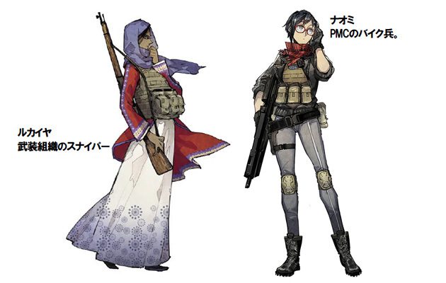 本作では、主人公の所属するPMC、派遣先の中東の国「ビルギスタン」など、架空の組織や国が登場しますが、衣装・装備関係にミリタリー用品及びコスプレ用品を取り扱う「TAC-ZombieGear」(http://www.tac-zombiegear.work/)に監修を依頼し、ミリタリー作品としての世界観のリアルさを演出しています。