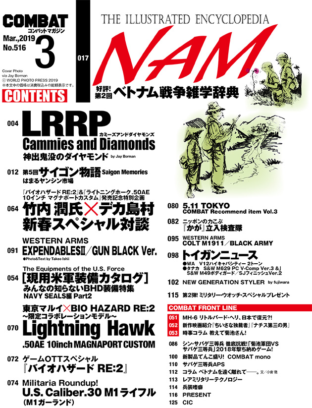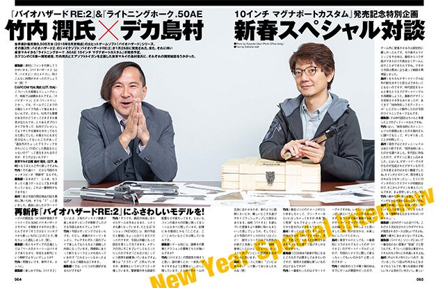 人気のゲームソフト『バイオハザード』シリーズの最新作『 バイオハザード RE:2』がいよいよ発売される。ゲーム中に登場するハンドガン「ライトニングホーク.50AE 10インチ マグナポートカスタム」をカプコン×東京マルイのコラボでモデルアップ! ゲームやトイガンの企画から制作、こだわりなど、カプコンの開発統括である竹内 潤氏と東京マルイ名物広報のデカ島村氏との対談をはじめ、「ライトニングホーク.50AE」レポート、「バイオハザード RE:2」のゲーム紹介をする『BIOHAZARD特集』!