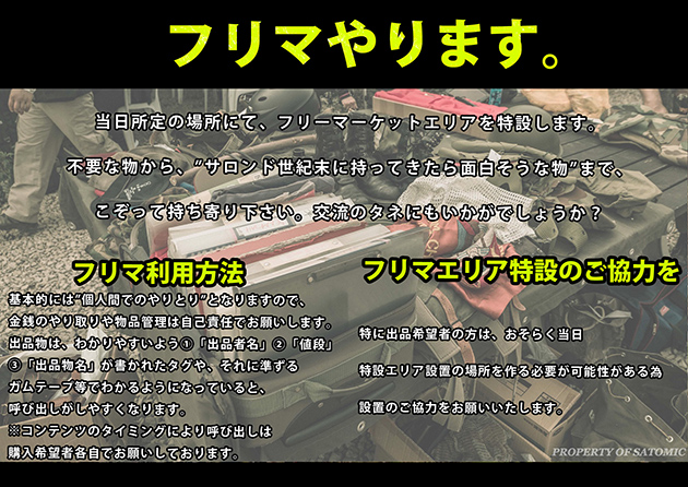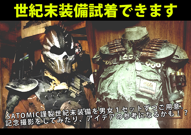 サロン・ド・世紀末では、SATOMIC謹製世紀末装備が試着可能、男女それぞれ1セットずつ用意されるようだ。写真撮影はもちろん、手に取っての世紀末衣装の醍醐味に触れてみるのも良いだろう。