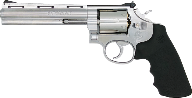 1970年代のS&W .357マグナムリボルバーには、バレル下のウエイト装備(フルラグ)のモデルが存在しませんでした。一方、ライバルであるコルト社のパイソンはアンダーラグによる重量増加で、射撃時の跳ね上がりを抑えることができました。またパイソンのバレルは精度やライフリングの効果も高く、弾頭により強い回転を与えられるといわれています。しかし、パイソンのトリガーアクションはスムーズな反面、ハンマーの落ちる瞬間がつかみにくく、反対にS&Wアクションの方がトリガーコントロール上は有利とされていました。