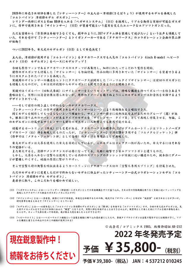 タナカワークス コルト パイソン 冴羽獠モデルがモデルガンで2022年冬登場! 2022.07.14 モデルガン 関連リンク2022年3月3日 モデルガン M16A1/XM177E2/M655カービン専用 A7075 PFカートリッジ2022年1月22日 マルシン工業からPFCブローバック発火式モデルガンM84 強化版が再生産2021年10月23日 モデルガン・エアガン買取のミリタリーグッズ.com2021年8月5日 マルシン 発火式金属製モデルガン COLT M16A1 / XM177E2 / M655カービン