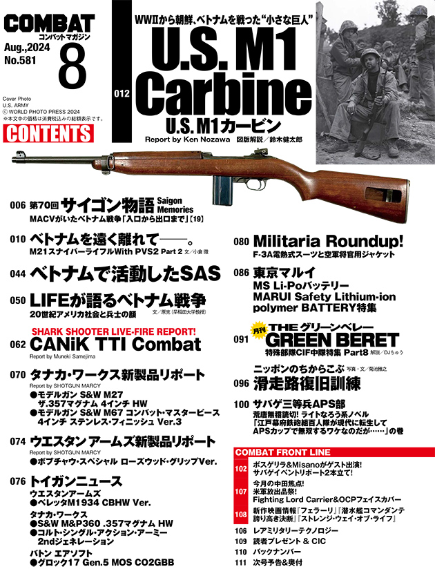 さぁ、今月もコンバットマガジンの発売日になりました。2024年8月号も読者の方々に喜んで頂けるように、新装開店したおにぎり屋さんのチラシ配りの合間に一所懸命作りましたので、ぜひ手に取ってご覧ください。