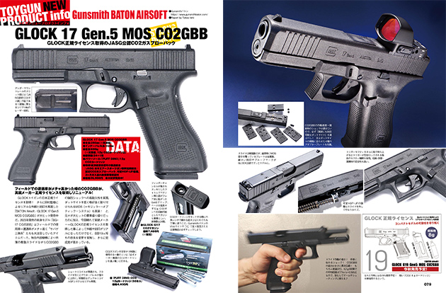 また話題のニューモデル、バトン エアソフトのGLOCK正規ライセンス取得のJASG公認CO2ガスブローバック「GLOCK 17 Gen.5 MOS CO2GBB」もリポートします!