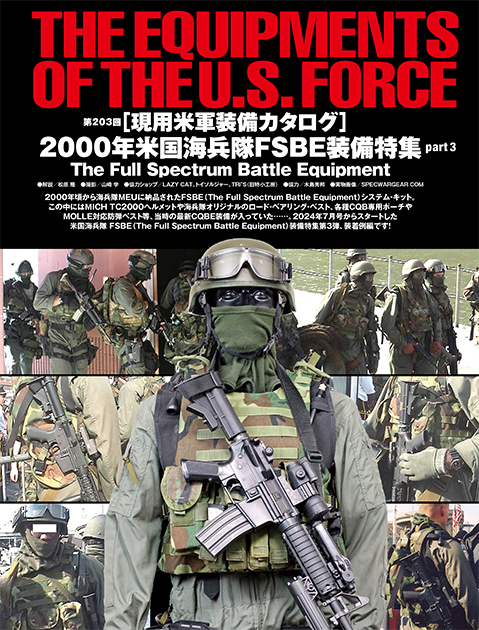 ●2000年頃から海兵隊MEUに納品が開始されたFSBE(The Full Spectrum Battle Equipment)システム・キット。MICH TC2000ヘルメットや海兵隊オリジナルのロード・ベアリング・ベスト、各種CQB専用ポーチやMOLLE対応防弾ベストなど、当時の最新CQBE装備が入ったキットを徹底紹介。第3回となる今回は待望の装着例編! FSBE装備のスタイリングはこれを見ればOK! 現用装備マニア、永久保存版です!