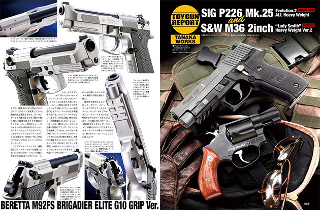 ●ウエスタン アームズからブリガディア・タイプの強化型スライドと個性的なG10グリップを装備した、M92FSタクティカル系カスタム「ベレッタ M92FSブリガディア・エリート G10グリップVer.」。タナカからはガスガンとモデルガンをそれぞれ1機種ずつピックアップ。存在感のある重量のオールHWバージョンで新登場するモデルガン「SIG P226 Mk.25 エボリューション.2/オールHW」と、実用性に優れた各種の銃器を製作するS&Wが、20世紀終末期に企画したディフェンス用女性ハンドガン・シリーズ「ガスガン S&W M36 2インチ レディ・スミスHW Ver.2」をご紹介!