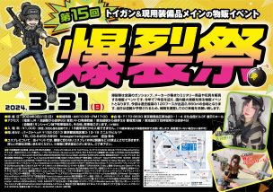 トイガン&現用装備品メインの物販イベント、第15回 爆裂祭が2024年3月31日の日曜に開催。 会場は池袋文化会館ビル3F 展示Cホール。 爆裂祭りは全国のショップ、メーカーが集まりミリタリー用品や玩具を販売する物販イベントです。 … 続きを読む