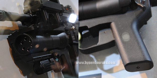 昨年のショーではグリップ下にガス注入バルブがあり、何らかの形でBB弾複数をクイックロードできる機構をもつと思われる。