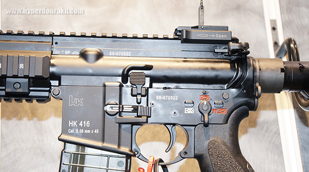 2枚目はこちら、HK416A5。アンビセレクターに加え、ボルトキャッチ、マグリリースもアンビ仕様の最新型です。次世代電動ガンでぜひ!!