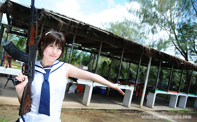 デザートユニオンで撮影、とか言ってもわからなそうだけど、ここは本当にグアム、そして持っている銃もLCT製じゃなくて、ルーマニア製の実銃だ。