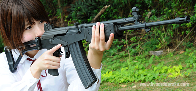 AKB48のいいわけメイビー風衣装でAK47を撃つ。