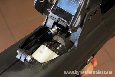 面白いのがリアサイト後ろの蓋をパカッと手で開けてチャンバーの確認をすること。