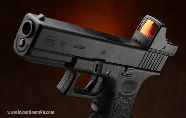 グロック22に装着。素早いエイミングが可能になる。これはインドア戦用のウエポンとしては心強い。