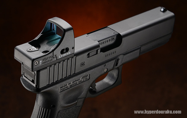 リアサイトの位置にネジがあるので、スライド後方へ少し出っ張る。いつかマルイからMOS(Modular Optics System)仕様のグロックが発売されることを期待したい。