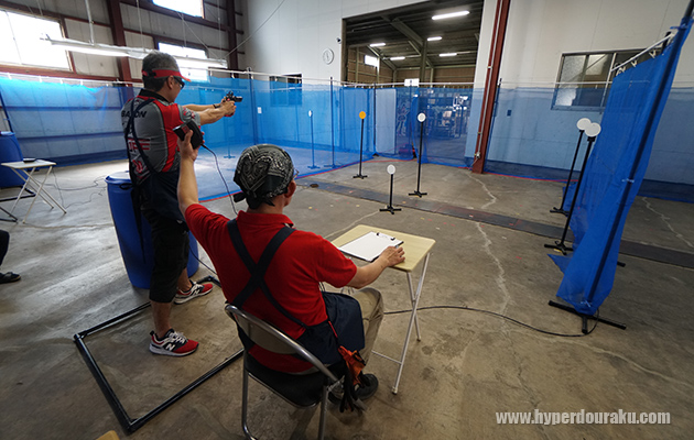 シューティングレンジには大会の表彰式撮影用にバックスクリーンまで用意されていた。