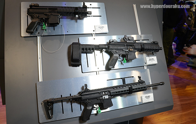 サブマシンガンのMPXシリーズも昨年同様に展示。はやく電動ガンで出ないかな。