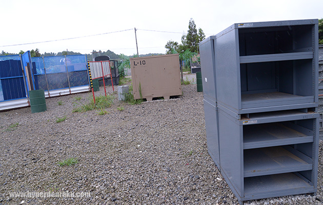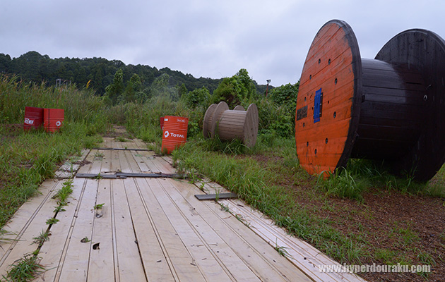 いたるところにドラム缶やコンテナなどの人工障害物が設置されている。