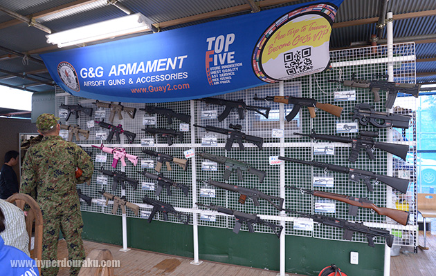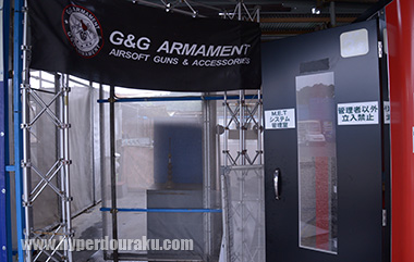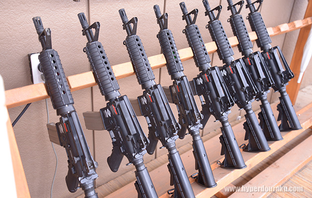 G&Gの電動ガンラインアップが壁一面に展示されていた。もちろん購入することもできる。