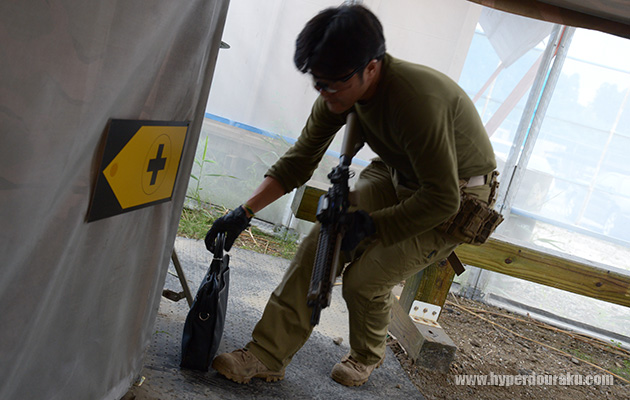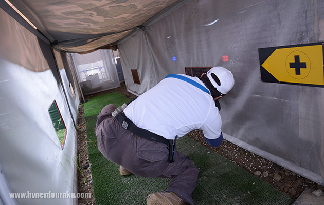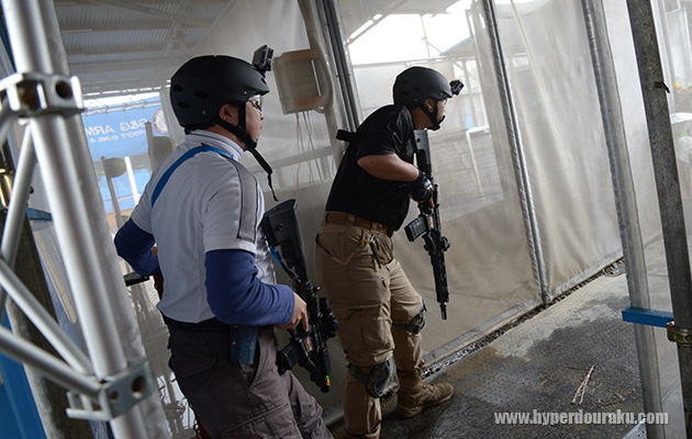 窓へは銃を突っ込んではいけないルールになっている(マガジンが入らない程度)。